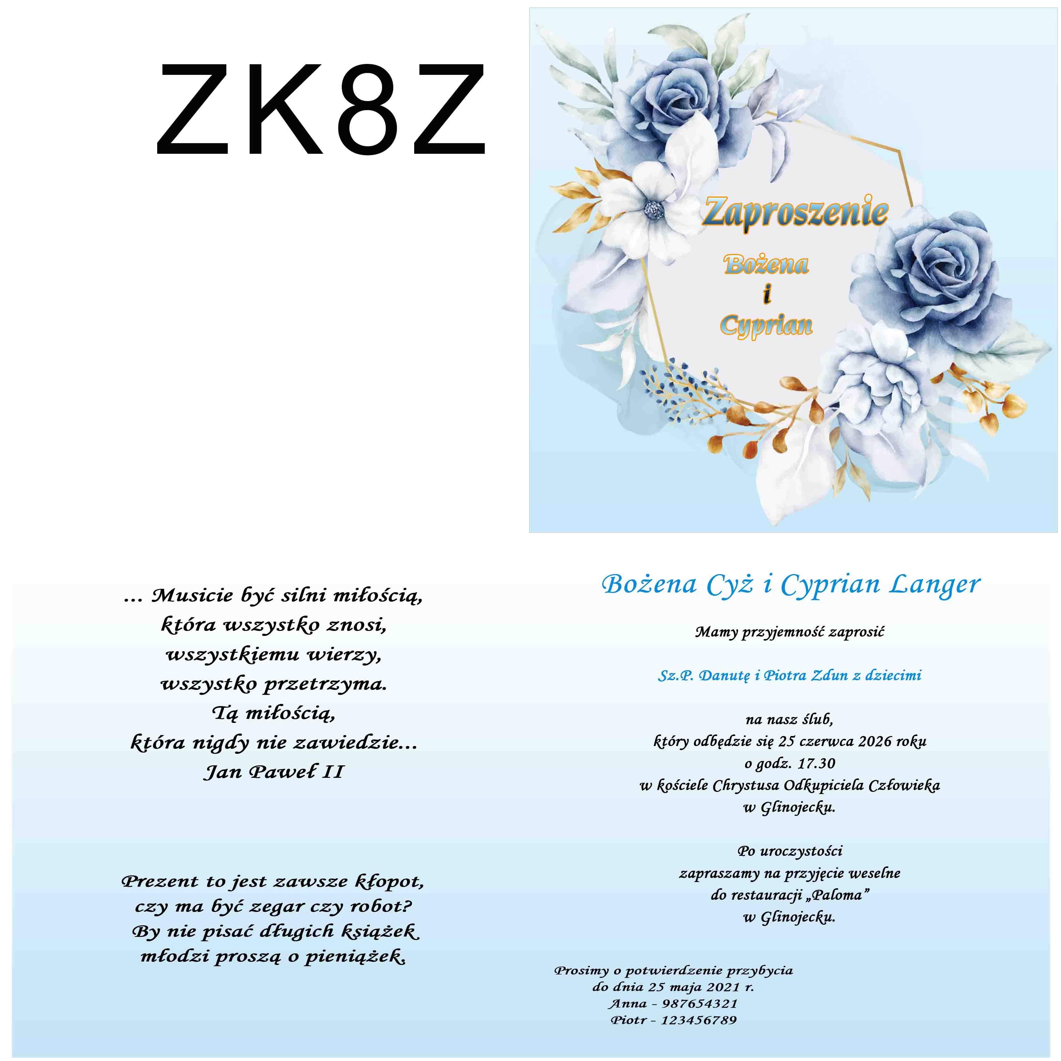 Wymiary zaproszenia.